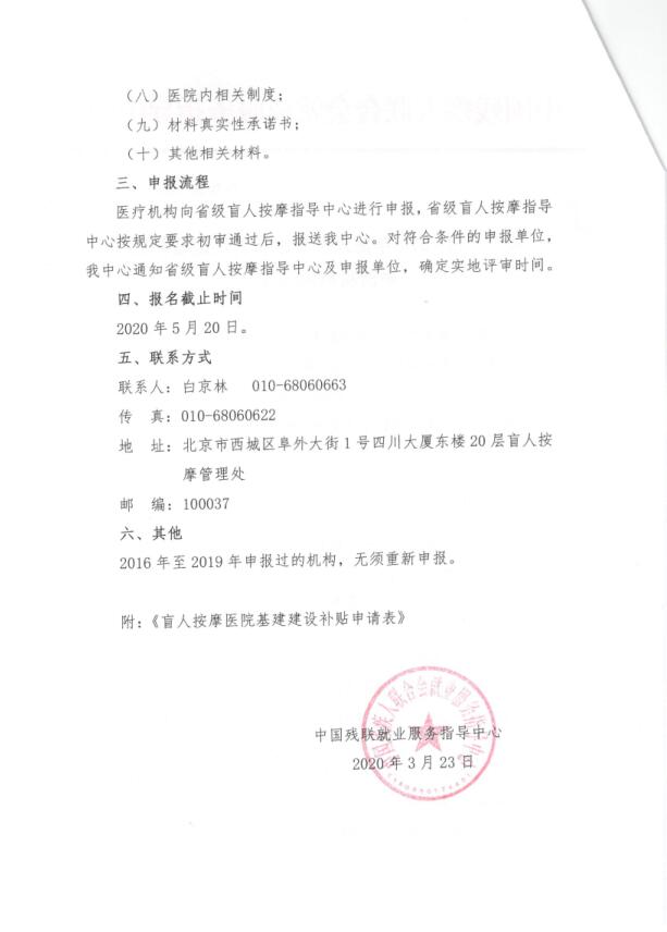 2.《2020年盲人按摩医院基建建设补贴申请材料的通知》