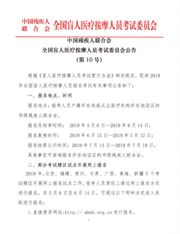 下一条: 关于转发中国残联全国盲医考办《关于做好2019年全国盲人医疗按摩人员考试报名工作的通知》的通知