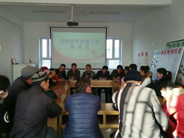 2016年11月11日下午,博乐市残联住托依里村工作组协同村“两委”组织阿场托依里村贫困户召开扶贫工作座谈会。会议由村党支部第一书记吴祖新主持,住村工作组组长、博乐市残联理事杨继春介绍了近两年来各级党委政府精准扶贫所做的工作及脱贫的标准,向大家说明全村实现了脱贫任务。座谈中大家一致认为近年来各级党委政府为精准扶贫做了大量卓有成效的工作,通过教育、安居、医疗、社保、暖心、就业、安全等惠民措施,极大改善了各族群众的生活质量,柏油路修到了家门口,路灯照亮了门前道路,家家住上了放心房,结上了城里的亲戚,子女确保上了大学,每年都能免费体检,社会治安良好,党的各项政策都会及时传达到家里……。大家纷纷表示感谢党和政府的好政策给他们带来了幸福生活。今后他们将继续努力工作,巩固脱贫的成果,减少社会的负担,为社会进步做出自己的贡献!