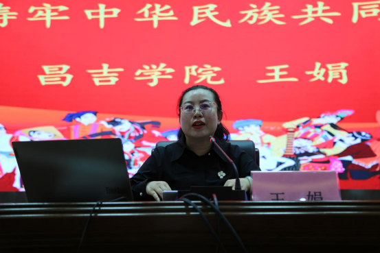 图为昌吉学院国家通用语言教育学院党总支副书记、副院长、文学博士、副教授、硕士研究生导师王娟的《共有的家园—铸牢中华民族共同体意识》专题讲座