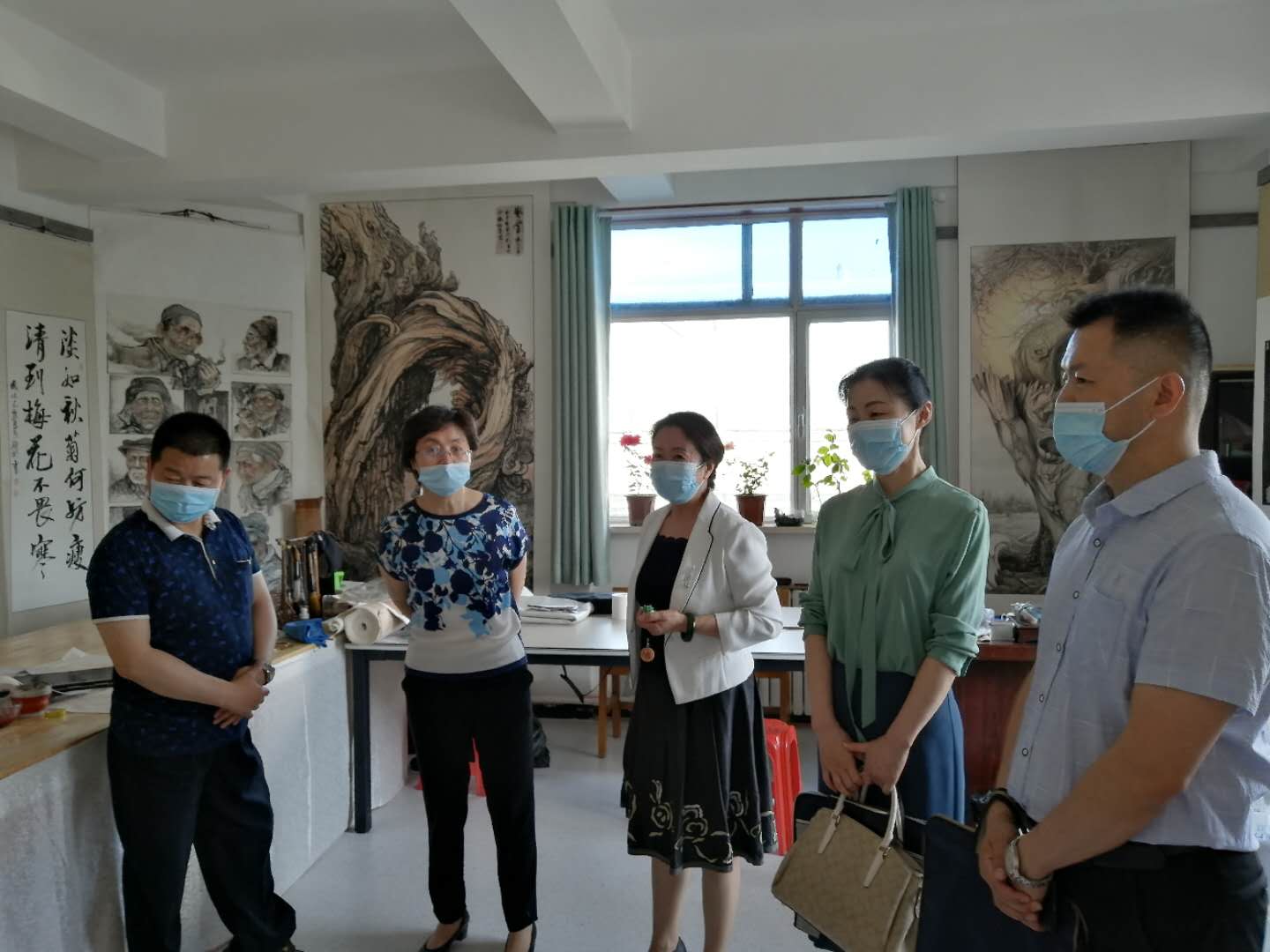 图为兵团残联党组书记、理事长陈春燕一行参观新疆残疾人双创基地