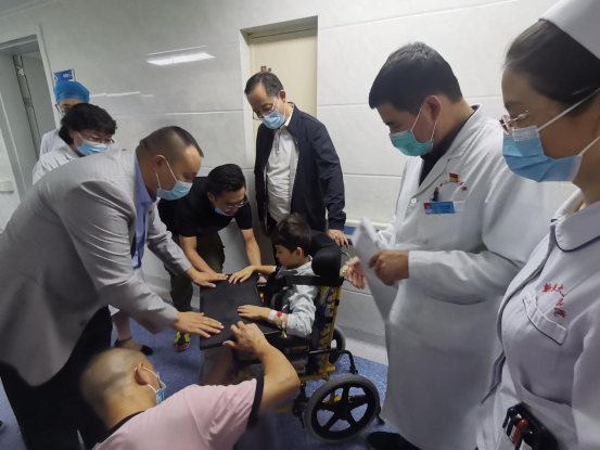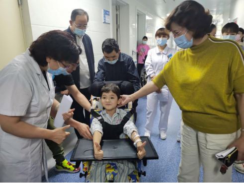 8月17日下午,自治区残疾人康复服务指导中心党支部联合自治区残疾人辅具资源中心党支部为13名脑瘫儿童每人配送了一台儿童轮椅,鼓励他们在医院积极配合康复治疗。