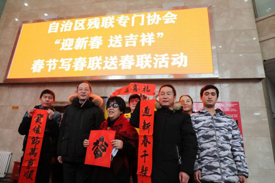 春节将至,为深入贯彻文化润疆,弘扬中国传统文化,增添节日气氛,自治区残联专门协会在自治区残联一楼大厅举办了“迎新春 送吉祥”写春联送春联活动。