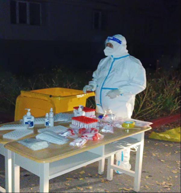 图为援派干部在隔离点进行核酸采集