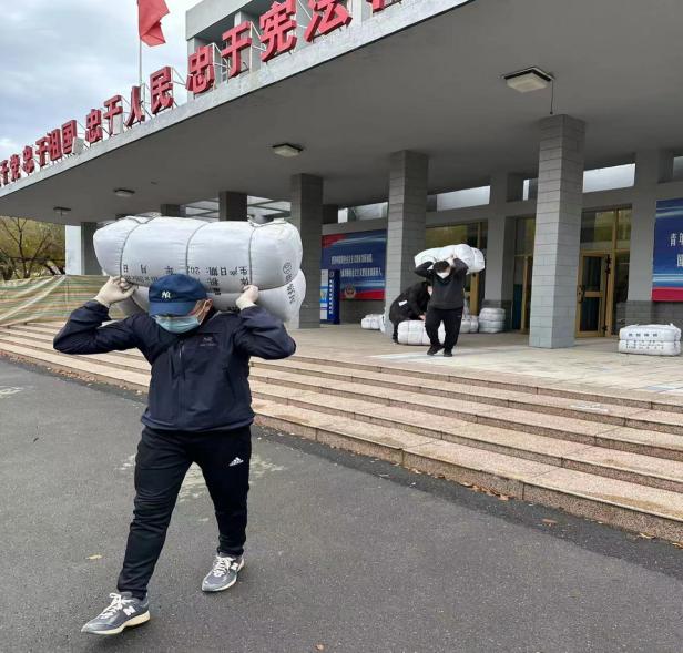 图为援派干部在搬运生活物资