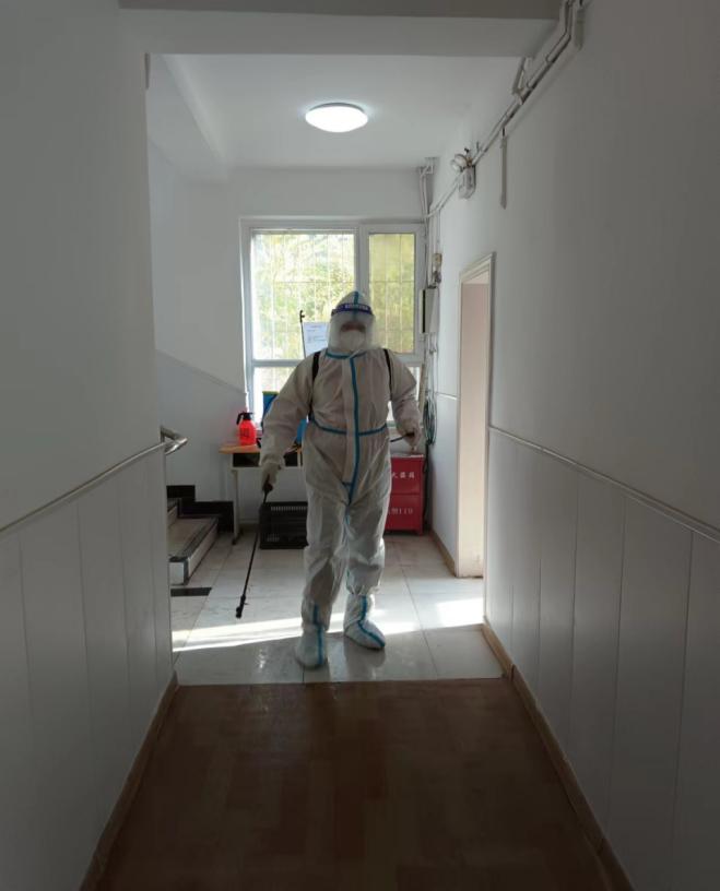 图为援派干部对隔离区进行消杀