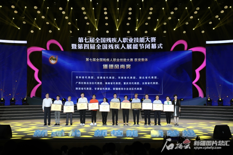 6月29日,在山东省济南市举办的第七届全国残疾人职业技能大赛上,新疆代表团获得团体“道德风尚奖”。 王霞摄