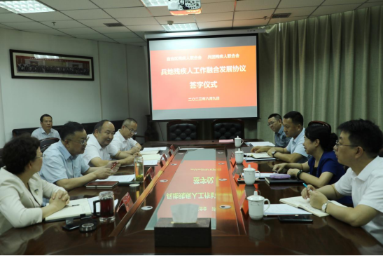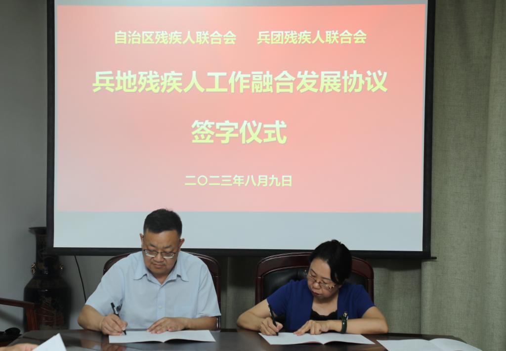 图为兵地残联签署“兵地残疾人工作融合发展协议”