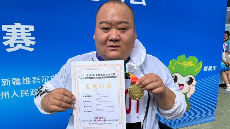 今年33岁的臧彦浩,是一名乌鲁木齐代表队田径三投项目的老将,曾在天津残运会参加铅球项目,荣获全国第四名。臧彦浩表示:“能获得本届残特奥会冠军,非常荣幸,在接下来的比赛中,希望乌鲁木齐代表队的队员,能再接再厉,取得好成绩。”