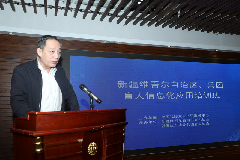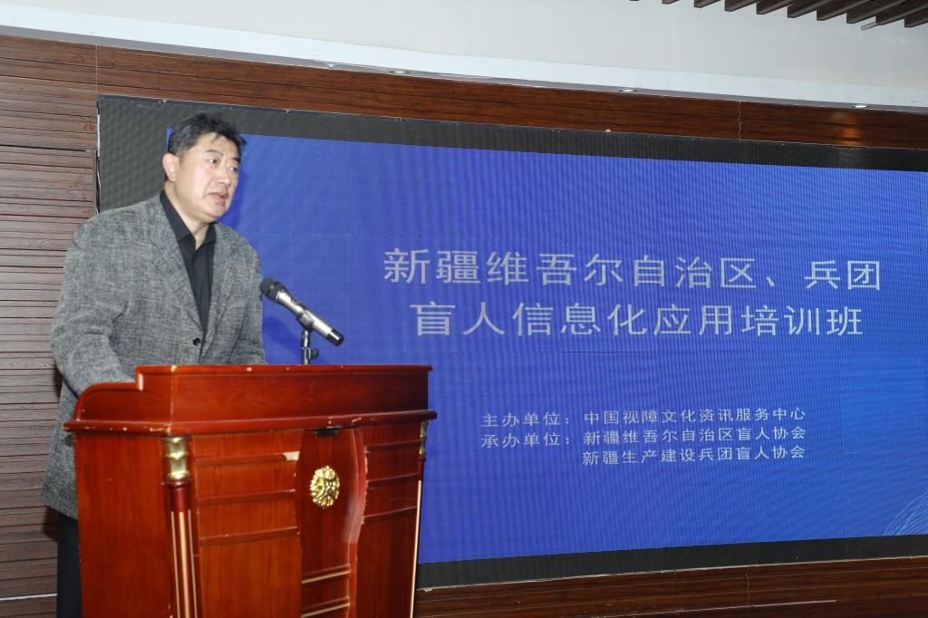 此次培训班由自治区盲人协会和兵团盲人协会共同承办。朱兵、陈宏博分别代表中国盲文图书馆和自治区残联致词,兵团残联副理事长常青主持开班仪式。