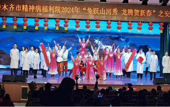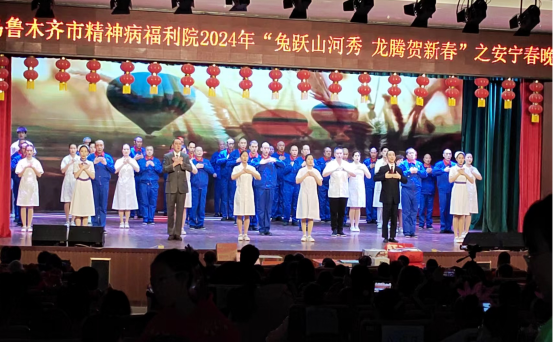 迎春晚会上,300余名精神残疾人和医护人员为观众呈现了《早安,中国》《中华全家?!贰妒窕贰犊ヂ矸裳铩贰睹览鲋泄返?5个精彩纷呈的节目,动人的歌声和美妙的舞蹈带来阵阵掌声。