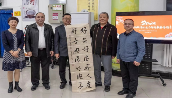 老干部朱永民(右二)代表全体老干部为新一届领导班子赠送书法作品