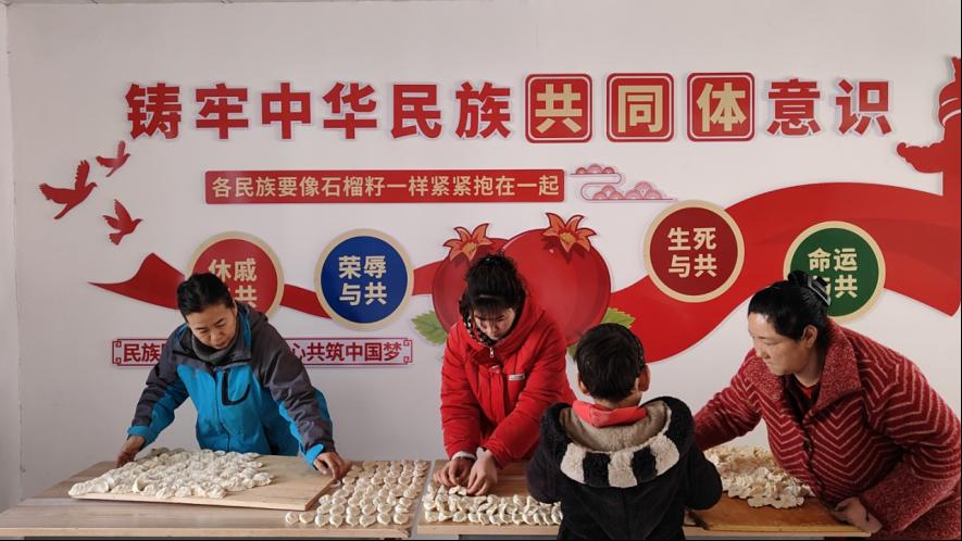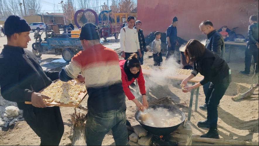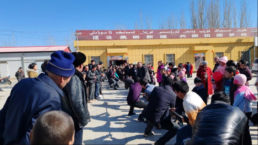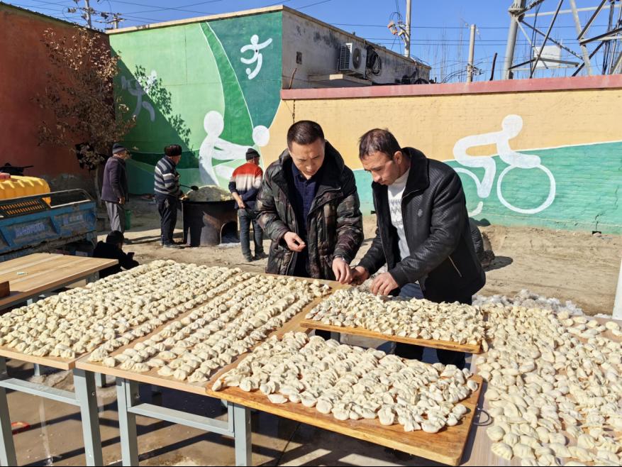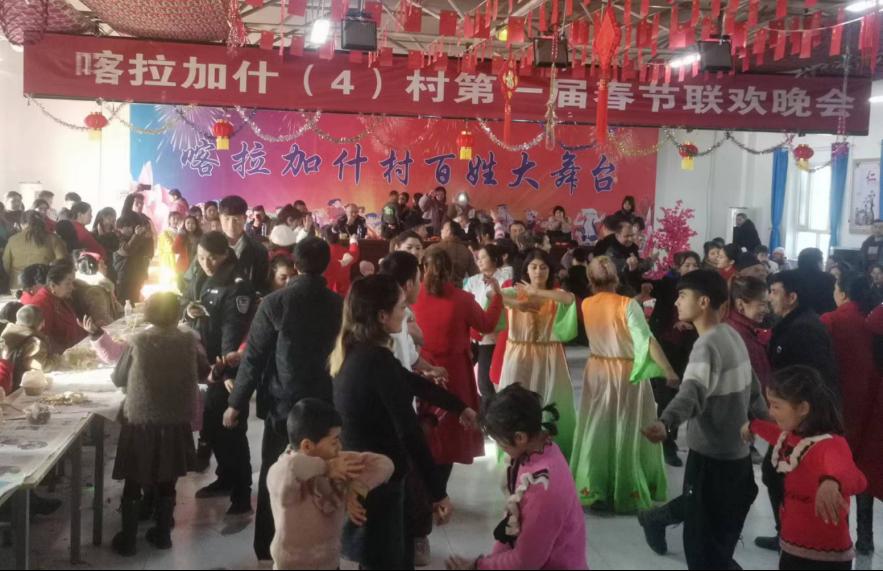 在喀拉加什村,一大早村里挂起了红灯笼,家家贴上了春联。驻村工作队和全村300余名干部群众欢聚一堂,大家在村委会包饺子、过大年,开展了拔河、篮球比赛等热闹的迎新春联谊活动,为有形、有感、有效铸牢中华民族共同体意识奠定了良好的基础。