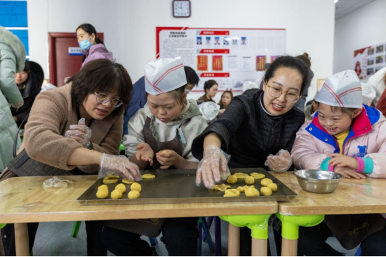 活动现场,康复教师绘声绘色讲述的故事《西饼屋的一天》调动了全体唐宝宝想吃饼干的欲望。在孩子们共同期待中,来自新禾特青烘焙坊的志愿者们送上了早已准备好的面团,引导大家按照自己的喜好制作精美的小饼干。有的做小恐龙形状饼干,有的做成了小猫咪形状,孩子们一边做,一边与志愿者们交流。其间,新疆广播电影电视少儿艺术团为孩子们带来了儿童剧《大大小小》,大家用热烈的掌声、热情的呼喊声表达着对节目的喜爱。