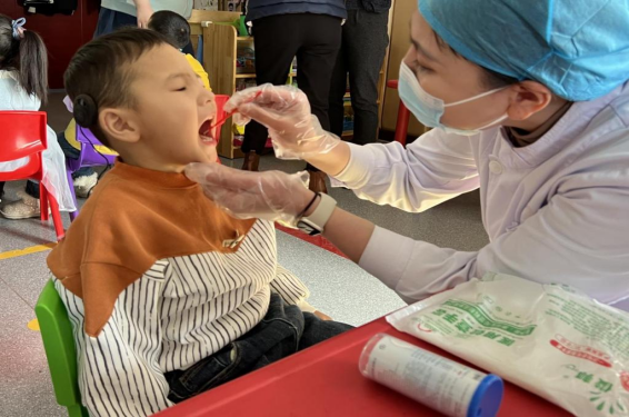 与此同时,乌鲁木齐市口腔医院医生、党员志愿者和南丁格尔志愿者为在训的残障儿童进行了牙齿义诊。