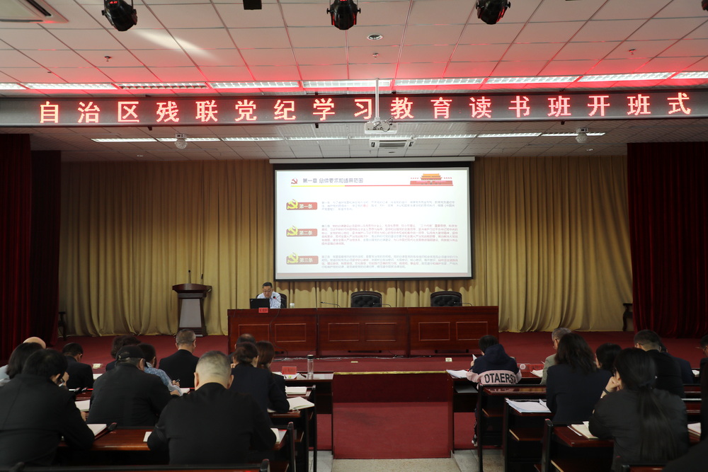 4月29日下午,自治区残联党纪学习教育读书班开班,自治区残联党组书记、理事长夏建新主持并讲话。