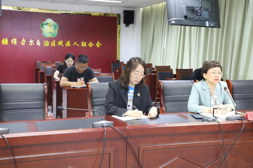 自治区残联宣文部全体干部在主会场参会,各地(州、市)残联主要负责同志、宣传文化工作负责人及宣传文化工作专干共80余人在分会场通过视频方式参加了会议。