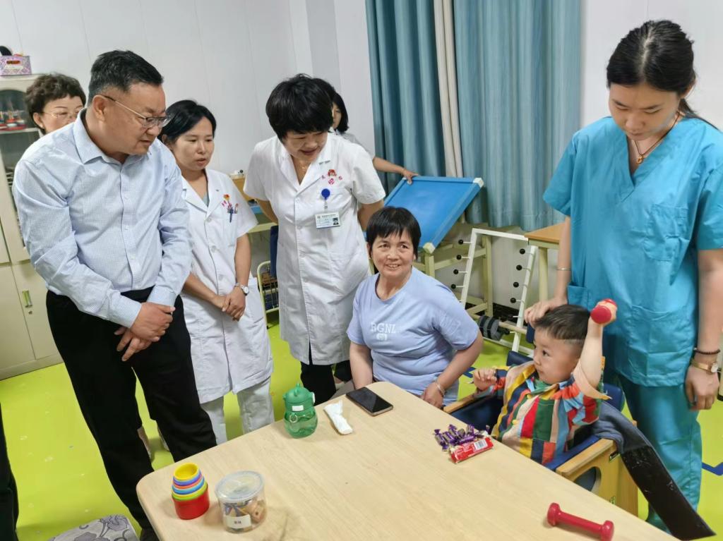 图为调研组调研焉耆县妇幼保健院残疾儿童康复工作