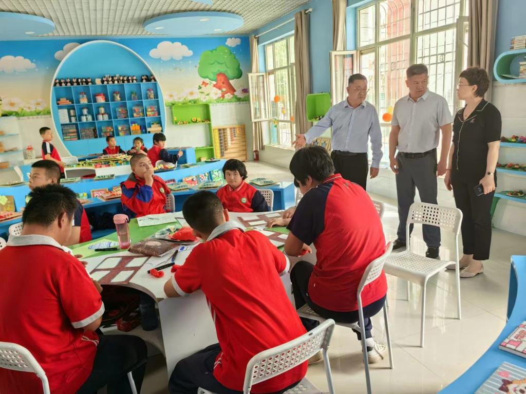 图为调研组调研焉耆县第一小学特教班教学情况