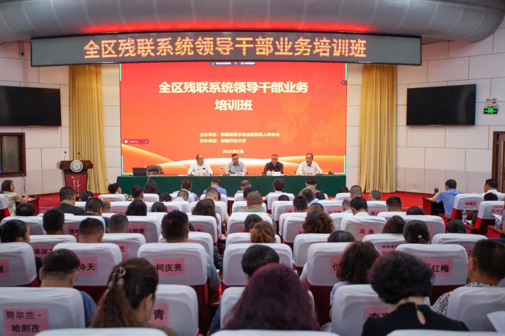 5月26日, 自治区残联系统领导干部业务培训班在新疆开放大学开班。来自全疆各地州市残联的书记、理事长、部分业务骨干、自治区助残协会各专门委员会的负责同志、各县市区残联的书记、理事长共计170多人参加培训。