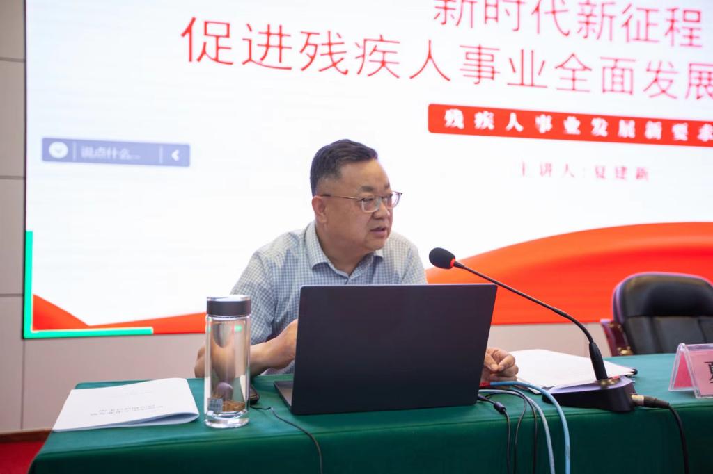 自治区残联党组书记、理事长夏建新做了题为《新时代新征程促进残疾人事业全面发展的新认识和残疾人事业发展新要求》的专题辅导,指出新时代残联要履行好“代表、服务、管理”的职能,重点提升残疾人社会保障水平、残疾人自我发展能力和康复服务质量,支持和鼓励残疾人自尊、自信、自强、自立,使他们以平等的地位和均等的机会充分参与社会生活,共建共享改革发展成果。