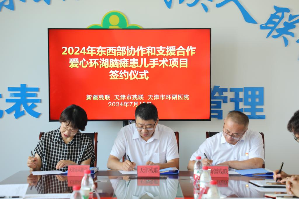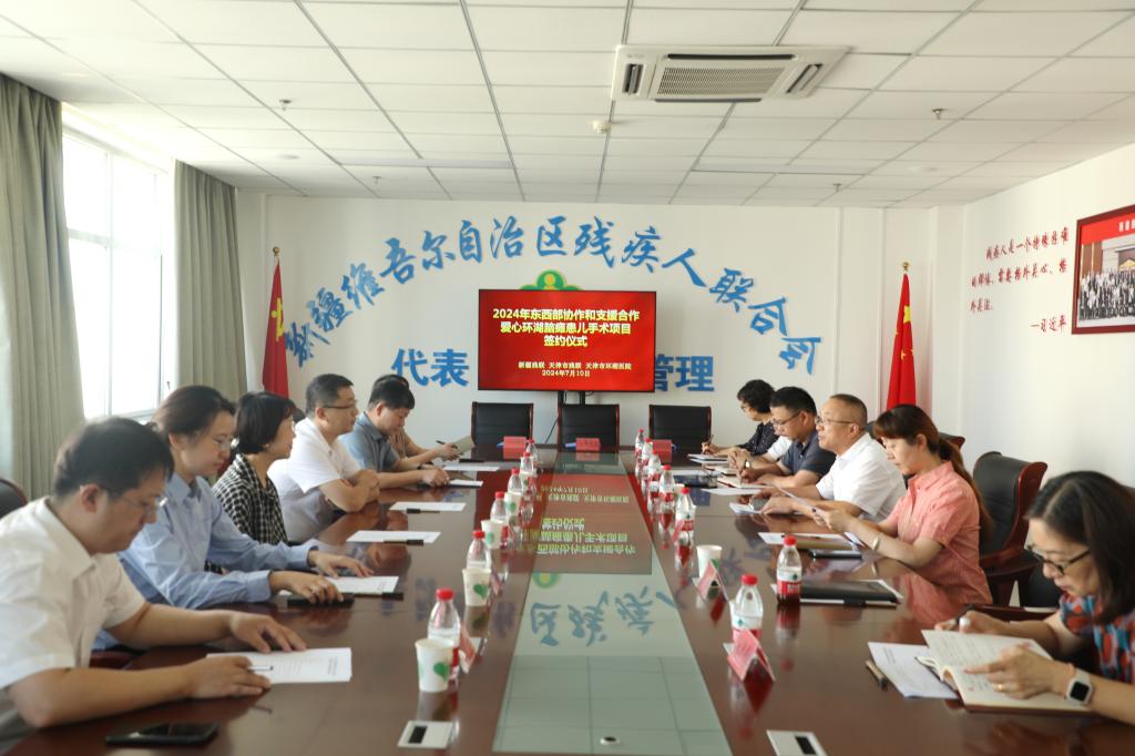 7月9日-10日,天津市残联党组成员、副理事长李东一行赴我区开展东西部协作和支援合作“爱心环湖脑瘫患儿手术项目”。双方在新疆军区总医院举行了定点医院揭牌仪式,在新疆残联举办了2024年东西部协作和支援合作“爱心环湖脑瘫患儿手术项目”签约仪式。新疆残联党组成员、副理事长覃国新、天津市残联党组成员、副理事长李东共同授牌并签约。