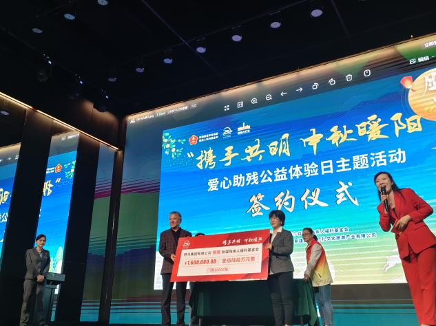 9月14日,由新疆残疾人福利基金会主办,野马集团有限公司、新疆国际大巴扎文化旅游产业有限公司承办的“携手共明 中秋暖阳”爱心助残公益体验日活动在新疆古生态园·汗血马基地(野马国际)成功举办?;疃校奥砑庞邢薰鞠蛐陆屑踩嘶鸹峋柙壑?60万元的门票,用于丰富残疾人群体的娱乐生活。