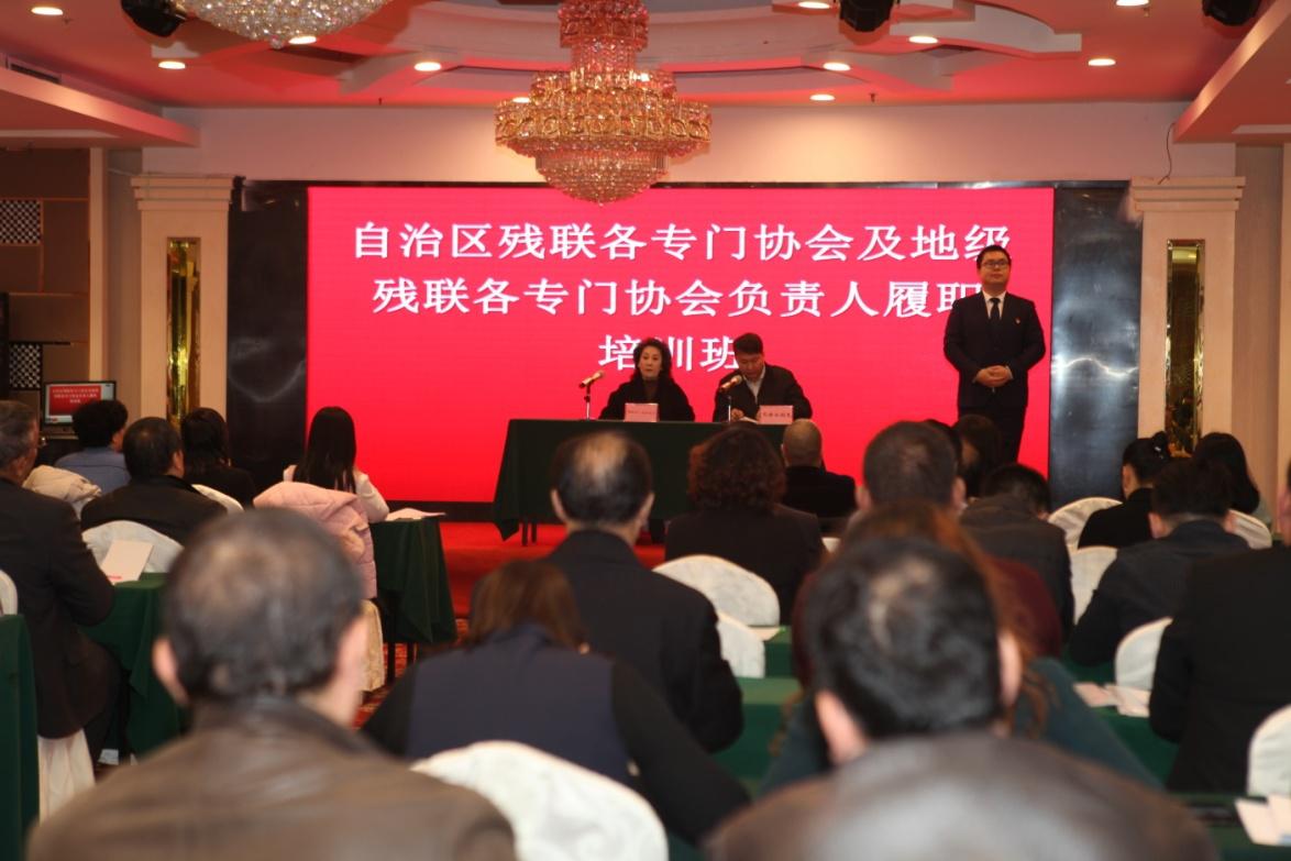 11月13日, 自治区残联各专门协会及地级残联各专门协会负责人履职培训班在乌鲁木齐市举办。自治区残联党组成员、副理事长热依汗·依沙木丁同志出席开班仪式并讲话。全疆14个地州残联分管协会工作的副理事长、组联部负责人,自治区及各地州残联五个专门协会主席、副主席共计120余人参加了此次培训班。