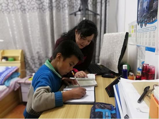 工作队队长、扶贫第一书记茹克娅在百忙中不忘关心困境儿童,10月9日,带着礼物和暖暖的爱心,看望父母“双收”的孩子和他的奶奶。贫困户SL人员萨吾提·肉孜家的孩子阿布外力·萨吾提今年小学4年级了,在“四同四送”中,工作队马妍发现孩子学习成绩差,国语能力表达能力弱。马妍看在眼里,急在心里,每天为其辅导作业至深夜,甚至把孩子带到自己的宿舍辅导,如今,孩子学习的积极性越来越高。