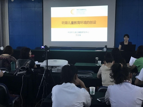 此次培训班特别邀请了中国听力语言康复研究中心语训部副主任王段霞和中国听力语言康复研究中心听力门诊部副主任医师王晓力,以及上海聋儿康复中心的王文迪三位全国知名专家来为大家授课。内容紧紧围绕医教结合服务模式和全面康复教育课程的要求,课程贴近工作实际需要。内容包括:听力学理论知识及实际操作;听障儿童一日生活实施指引、0-3岁听障婴幼儿亲子课程的构建与实施、听障儿童教育环境创设与指导、听障儿童区角活动指导策略、听障儿童家园共育策略等。