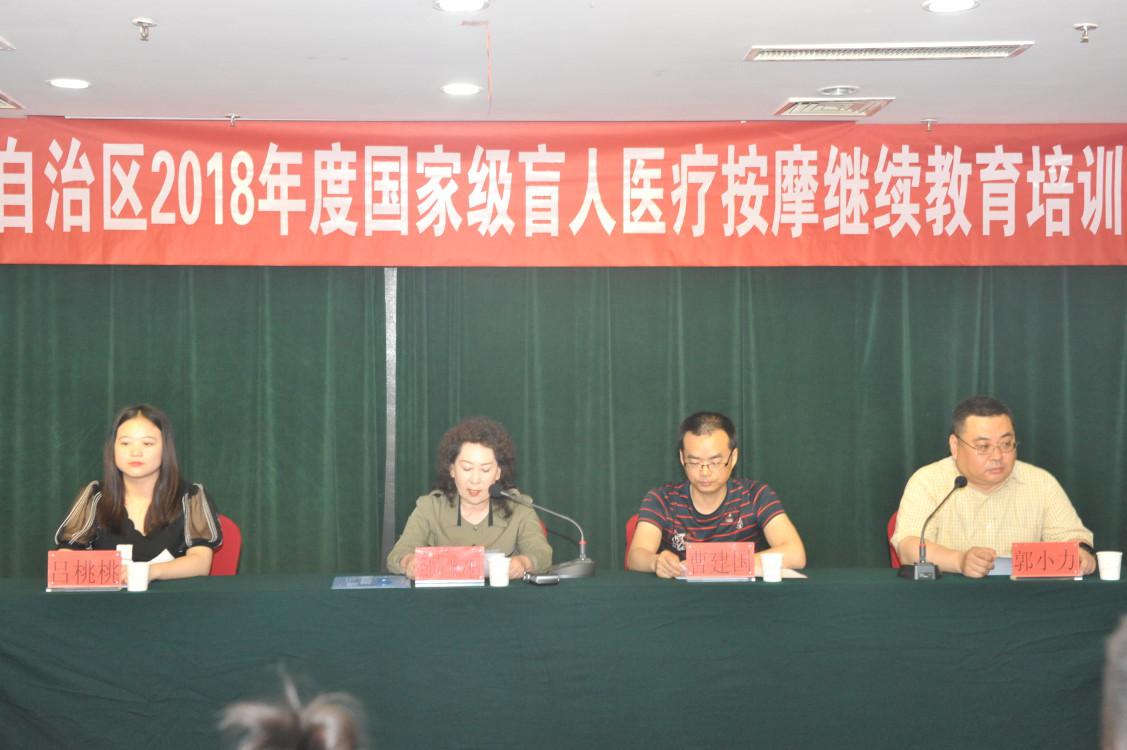 中国残联就业中心邀请北京中医药大学针灸推拿学博士研究生吕桃桃同志来我区进行培训。自治区残联党组成员、副理事长热依汗.依沙木丁同志在培训班开班仪式上做了致辞,自治区残联理事长助理郭小力同志主持会议,卫计委相关领导出席开班仪式。热依汗.依沙木丁副理事长说:“视障人士是一个数量众多、特性突出、特别需要帮助的社会群体,自治区党委、人民政府十分关心残疾人,高度重视发展残疾人事业,采取了一系列重大举措,推动残疾人事业稳步发展,特别是对视障人士给予了更多的关心、支持,在教育、就业等多方面出台了优惠政策。”