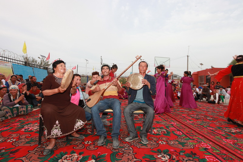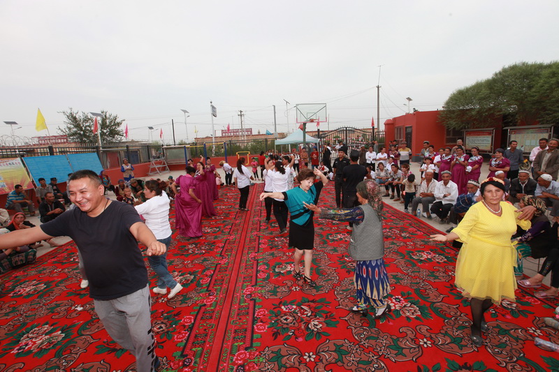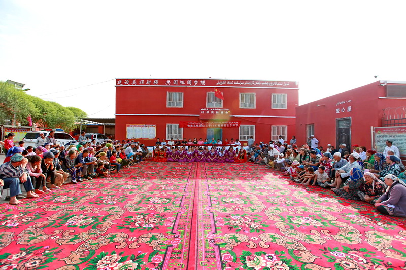 村民们载歌载舞、演讲朗诵,歌唱共产党好、歌唱祖国繁荣富强、讲述工作队来了为民办实事、讲诵村中的新道路、新广场、新安居房等变化,讲述村民思想改变、观念改变、生活的改变……,百姓的心淳朴善良,焕发了对党和政府的感恩、对工作队的信任,新疆的明天将更幸福美好、更繁荣富强!