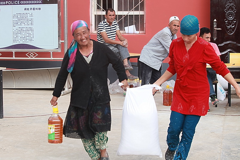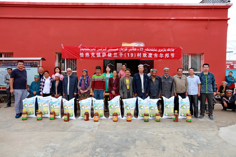 “古尔邦节”是维吾尔族等穆斯林民族的盛大节日,驻19村工作队为了让家家户户度过祥和欢乐的年节,在一个月前已筹备并于节前向全村每户家庭发放了面粉和食油共330份约3.5万元,发放低保金等国家各类补贴资金约25万余元,恰热克镇党委政府向本村20户特困家庭发放牛羊肉户均3公斤共3000元等,并举办了盛大的“古尔邦节”联欢会。