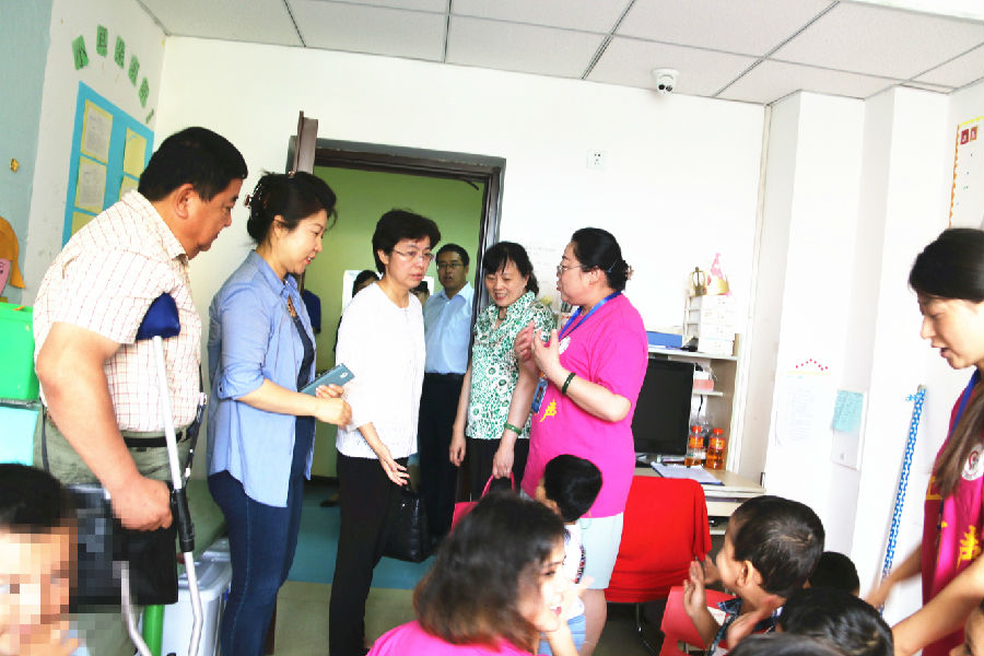 张海燕来到市爱心园孤独症儿童康复中心、市启聆聋儿康复中心、新疆长安中医脑病医院,看望慰问在康复机构接受训练的残疾人。随后,在市残联会议室听取了市残联及三家康复机构的工作汇报。