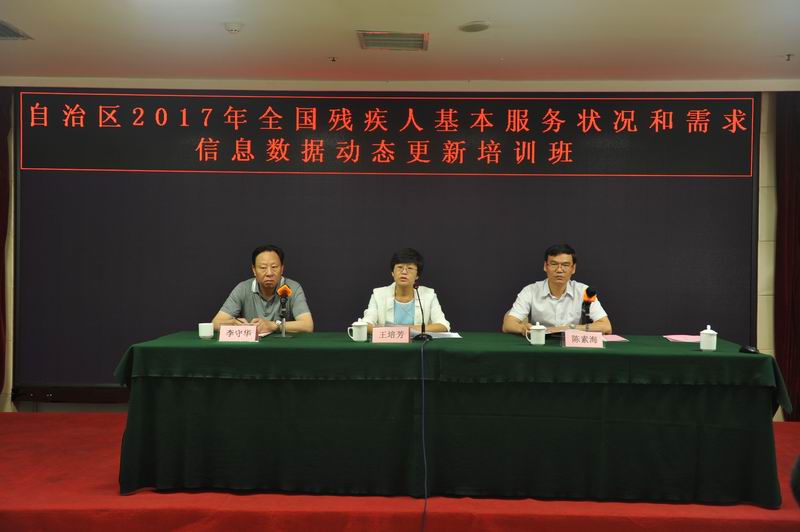 2017年6月12日至15日,自治区残联在乌鲁木齐举办“全国残疾人基本服务状况和需求信息数据动态更新工作”培训班。自治区残联党组成员、副理事长王培芳参加培训班开班仪式。各地州、市(县)残联分管负责领导和专职工作者130余人参加培训班。