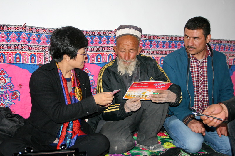 王培芳来到新认的大叔吐尔地?巴拉地家中,坐到地铺上对他家进行详细的家访。吐尔地?巴拉地老人今年81岁,是一名有着40年党龄的老党员,也是村里的“三老”人员。老伴10年前因患眼疾已双目失明。两个老人在家里兴奋地迎接亲人的到来。吐尔地?巴拉地说,作为去年自治区残联住村工作组组长,王培芳对我们一直关心照顾,今年每次来村里指导工作,都会来看我们,让我们很感激。现在,我们结为了亲戚,你就是我的家人了,希望亲人能多回到这个家里来。王培芳拉着老人的手说,新疆是个多民族的家庭,各民族要像石榴籽一样抱在一起,我们共同搞好团结,就是为新疆的社会稳定和长治久安做贡献,以后,有什么问题、困难,就请您直接给我打电话,我一定会尽力解决。老人高兴地说,现在党和国家的惠民政策多,政府每年给老两口发的各类补助有一万元,今年又建了安居房,生活上也过得可以,以后遇到什么困难会麻烦你的。临行前,王培芳将精心准备的衣服给两位老人穿上,并将慰问金塞到老人手中,叮嘱老人冬天来了,要注意爱惜身体。老人拉着王培芳的手,一直送出大门。