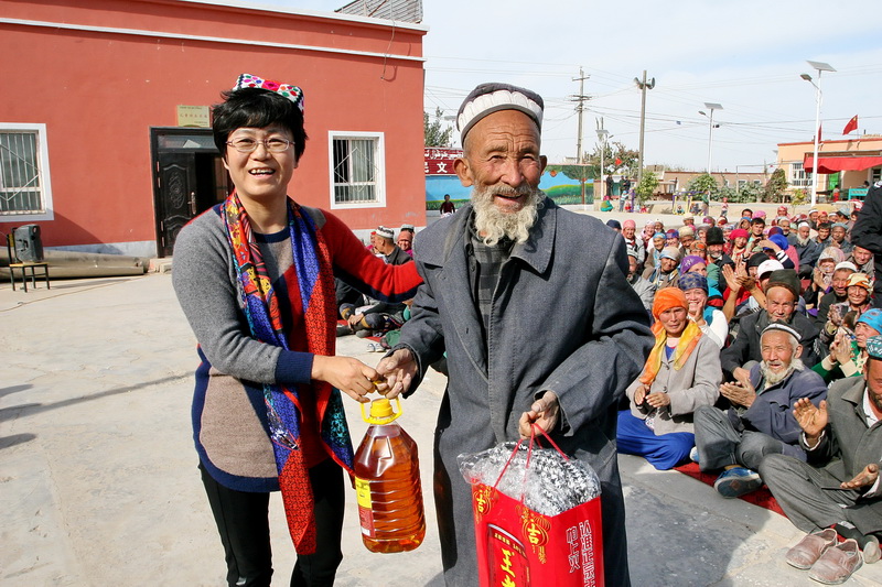 为尽快落实自治区“民族团结一家亲”活动动员大会精神,促进新疆各民族团结互助、交流交融,共同进步,自治区残联党组高度重视活动的开展,成立工作领导小组,领导率先垂范,及早组织干部职工开展结对认亲活动。26日,第一批19人与自治区残联访惠聚工作组所住村的19户村民结对认亲。残联的亲人们为村民带来了一包包的衣物、保健品、生活用品。村民们用精心缝制的小花帽回赠远道来的亲人。认亲仪式后,每个人分别到每户亲人家中,开展互帮活动。