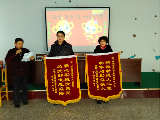 近日,为迎接新年的到来,呼图壁县残联日间照料站在二楼培训教室开展了“让爱与我们一起行动”庆?;疃谀慷嘀侄嘌?,丰富多彩,使得掌声雷鸣,欢呼不断,将现场的气氛一次次的推向高潮,活动中,由日间照料站残疾学生家长讲话并向残联的领导和日间照料站的工作人员敬献了锦旗,以此感谢残联的工作人员对日间照料站的残疾学生的关爱和帮助。
