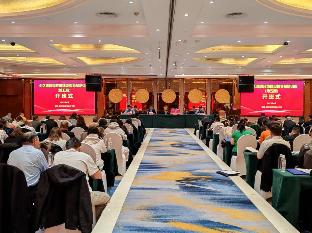 4月10日,自治区残联在独山子区举办无障碍环境建设督导员培训班,来自自治区助残协会、阿勒泰地区、塔城地区、克拉玛依市的140名工作人员参加培训。