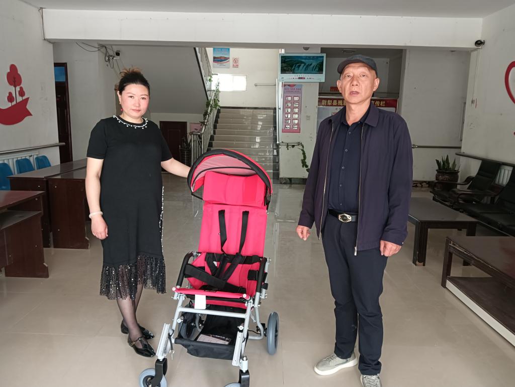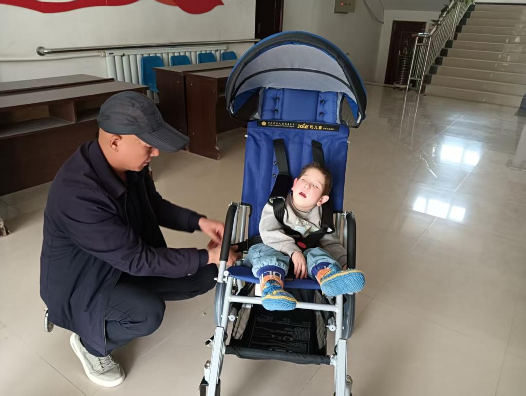 4月24日,尉犁县残联为困难残疾儿童家庭免费发放5辆便携式儿童轮椅,旨在改善残疾儿童护理和出行条件,助其更好融入社会。