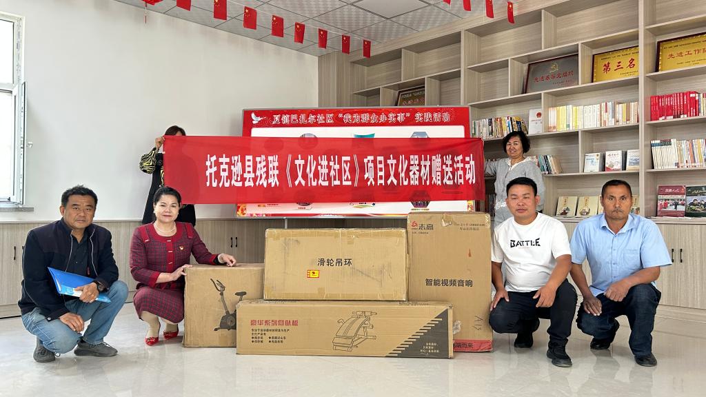 近日,吐鲁番市托克逊县残联举办文化进社区物资捐赠暨签约活动,先后在金泉、九龙等4个社区完成文化器材交接,提升残疾人群体公共文化服务硬件保障水平。