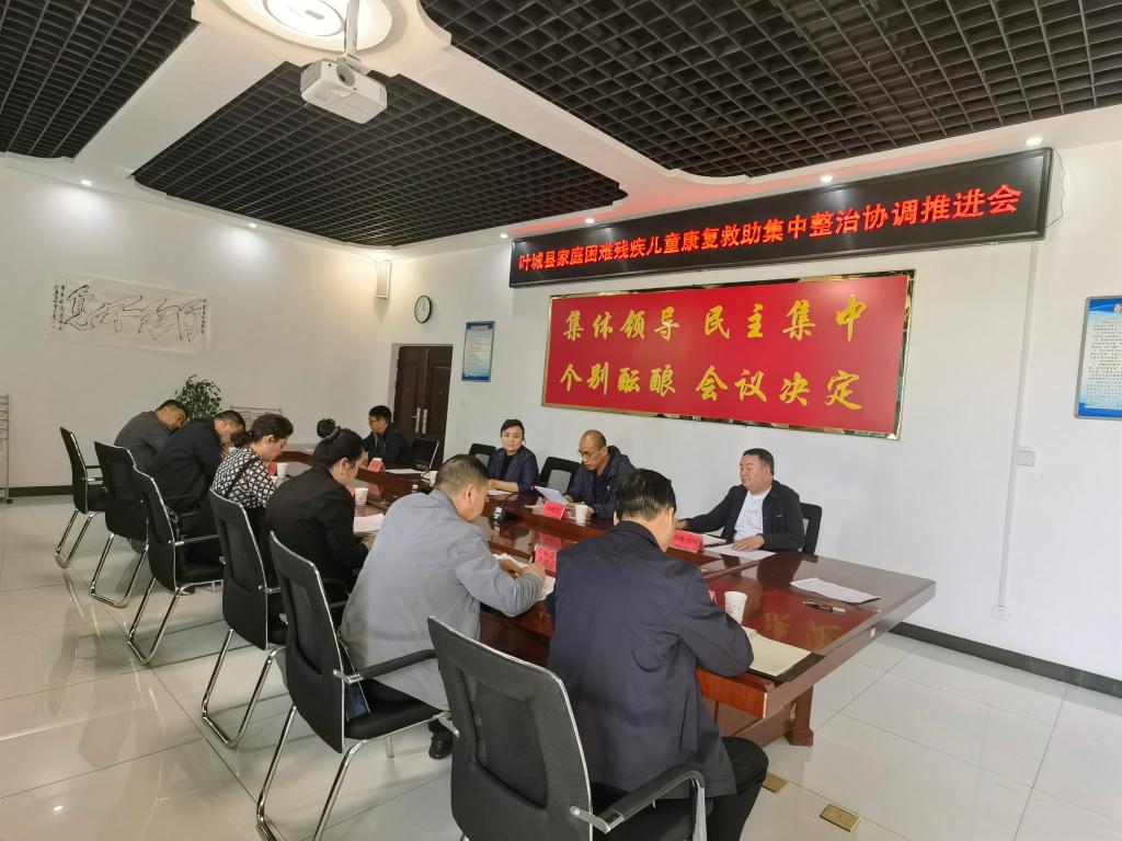 近日,叶城县残联在县残联二楼会议室召开残疾儿童康复救助协调推进会。县委常委、宣传部部长玛丽艳?木沙,纪委监委、卫健委、财政局等多部门主要领导参加会议,县残联党组书记、副理事长主持会议。