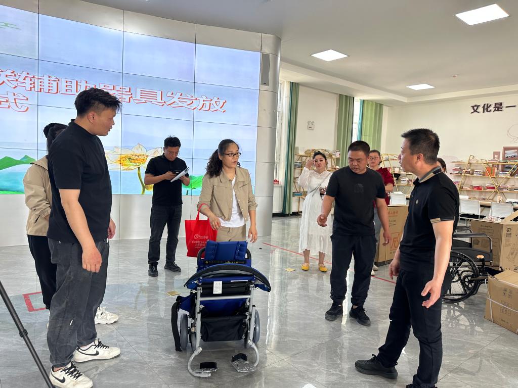 此次发放的轮椅专为3 至 15 岁、体重低于 45 公斤的脑瘫、脊髓损伤等肢体障碍儿童设计,便于日??蹈囱盗酚爰彝フ栈ぁ9ぷ魅嗽毕殖≈傅技页ぷ樽暗魇月忠?,讲解使用要点及康复政策,并针对性解答个性化需求。