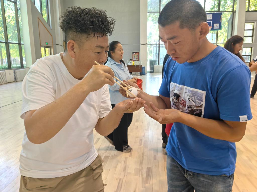 活动以拔河比赛“一拔到底”开场,随着哨声响起,队员们全力以赴,现场加油声此起彼伏。此次活动还设置“筷”运乒乓、踢毽子、“圈”出快乐等4个项目。残疾人朋友积极参与,展现个人风采与团队精神。肢体残疾人纳孜拉?拜布力孙高兴地说:“边摇呼啦圈边穿别针,第一次参加这样的活动,很有趣!”