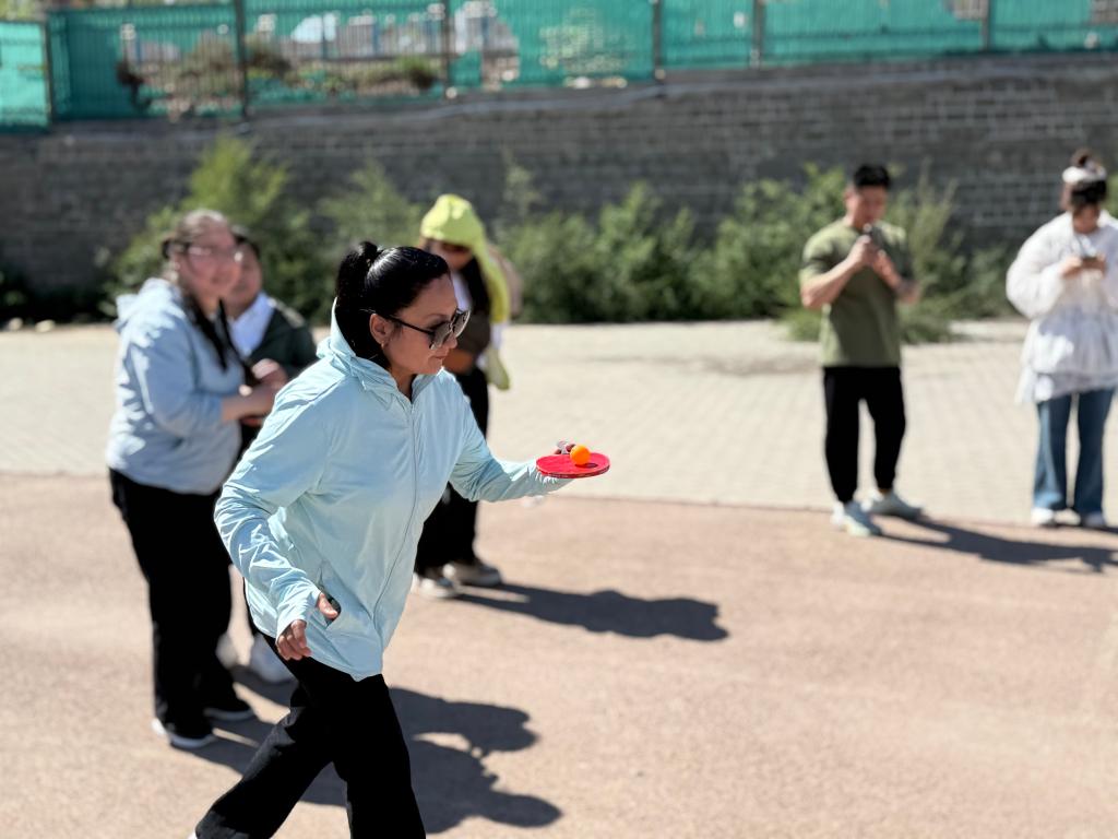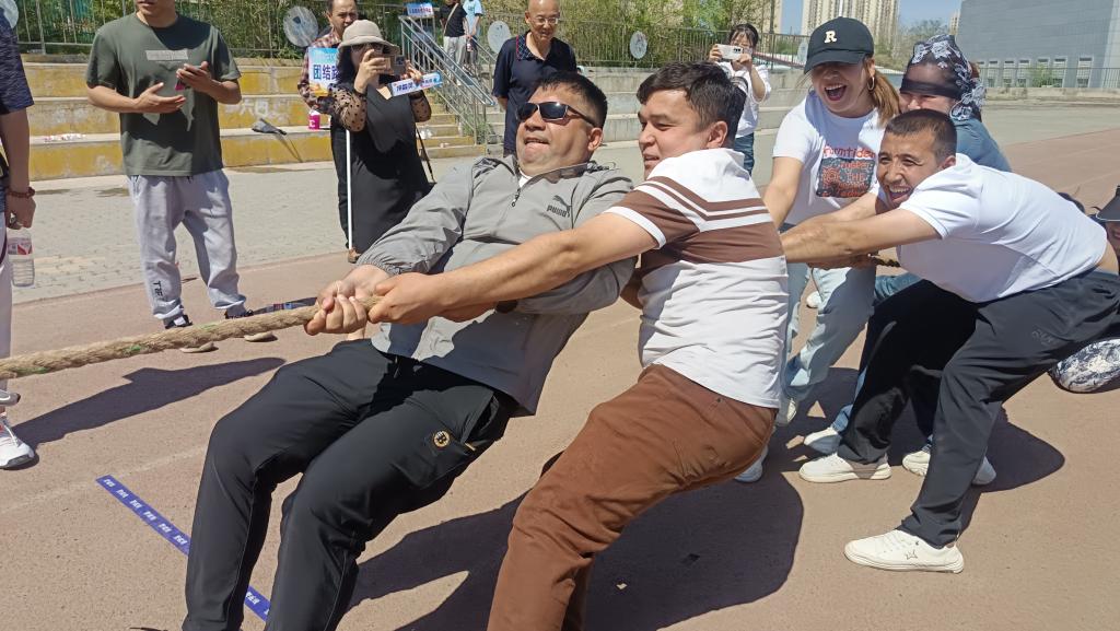 艾克拜尔?阿不都热合曼在致辞中肯定区残联在残疾人体育赛事中的成绩,鼓励选手挑战自我,赛出水平。运动会设集体拔河、运球接力、托球跑等趣味项目,采用“残健协作””模式。拔河赛中,10支队伍齐心协力后仰拉绳;运球接力时,选手两两夹球奔跑;托球跑项目考验平衡能力,参赛者专注控球拍稳步前进。