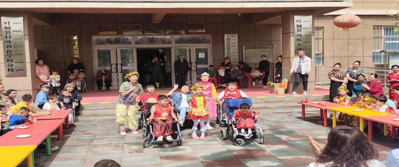 活动当天上午,康复中心内气氛热烈。残疾儿童用歌舞的纯真表演展现积极向上的精神面貌,演艺人员的精彩演出让孩子们感受文艺魅力。下午,叶城县伯西热克镇中心小学党员教师及县小学道德与法治工作室成员,以党团活动为契机开展“关爱残疾人,传递温暖力量”慰问活动。慰问人员参观生活环境与活动室,了解康复情况,并与孩子们亲切互动,赠送玩具、蛋糕、文具等礼物。孩子们以笑容回应关爱,传递对生活的热爱。