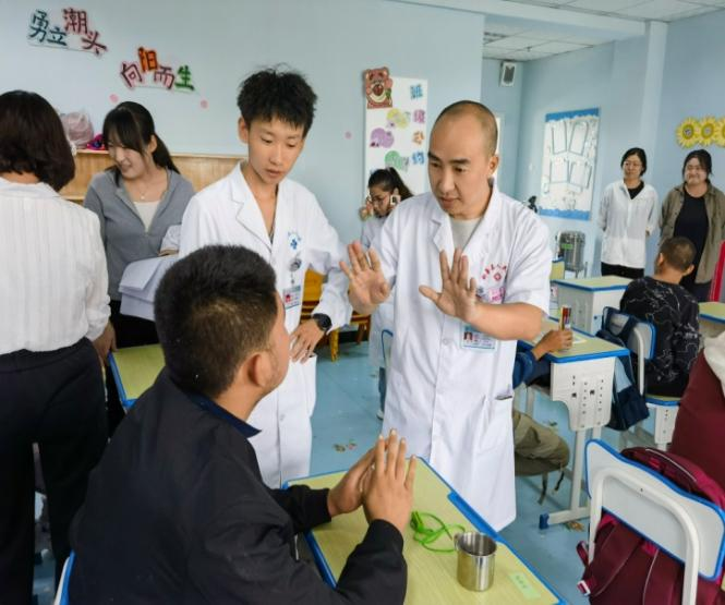 医共体总院发挥医疗优势,派康复专家定期进校园开展知识培训,提升教师与家长康复技能;同时开通绿色就医通道,保障孩子及时获得有效治疗。