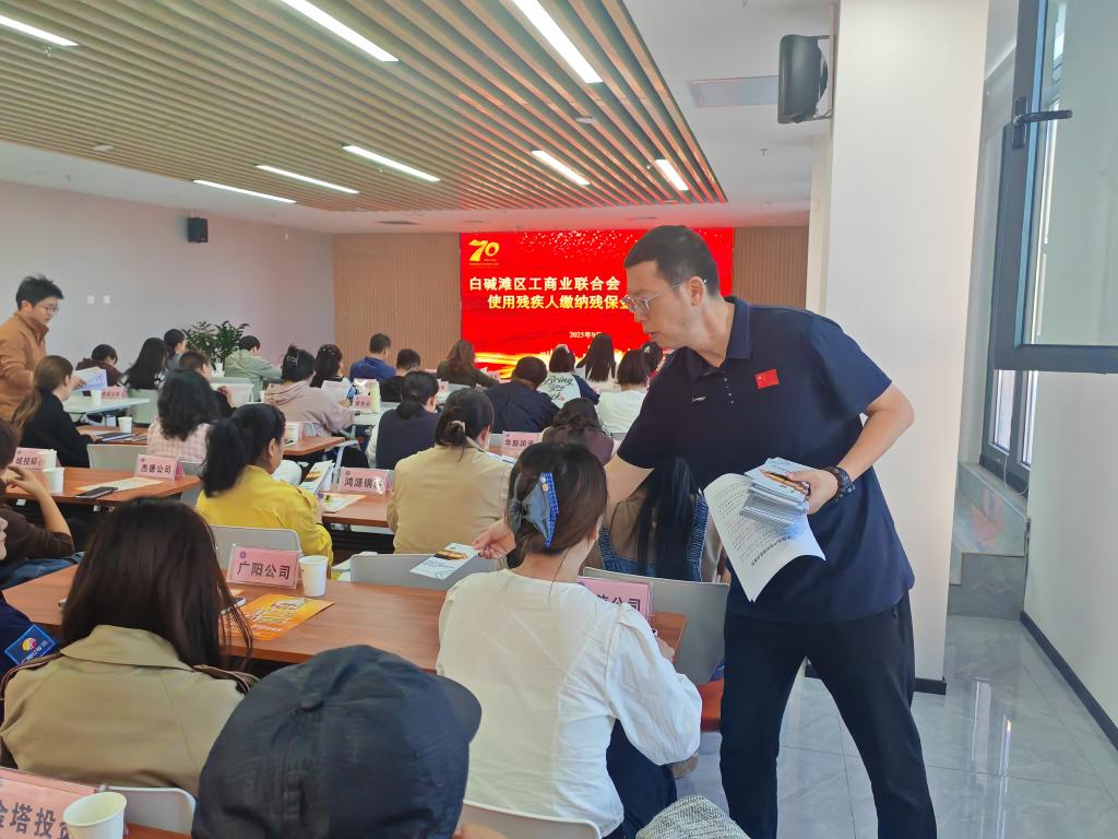 近日,白碱滩区残疾人联合会联合工商业联合会(商会)举办“促进残疾人全面发展,共享社会进步成果”主题宣讲会,面向60余家企业代表推介残疾人就业优惠政策,推动辖区残疾人高质量就业。