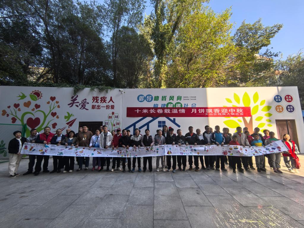 在新疆维吾尔自治区成立70周年及中秋、国庆双节将至之际,近日,天山区残联策划的“绘长卷迎国庆,做月饼庆中秋——情暖残障心”主题活动温情启幕。现场暖意融融,残障朋友与工作人员欢聚一堂,通过四大特色板块活动,在欢声笑语中感受节日氛围,传递关怀与力量。