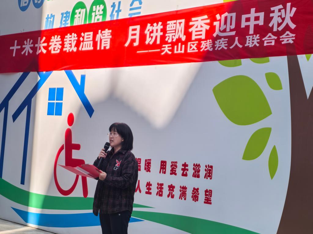 活动伊始,新疆残疾人福利基金会副理事长兼秘书长、新疆助残协会副秘书长王静蓉致辞。她表示,残疾朋友是社会大家庭的重要成员,党和政府始终高度重视残疾人事业发展,用心用情关心关爱残疾人群。此次活动既是践行团圆,也是祝福自治区成立70周年,希望更多人关注关爱残疾群体,共筑包容友善的社会氛围。
